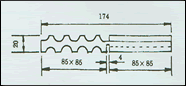 85 X 42.5 、85 X 85、131.5 X 85、174 X 85、220.5 X 85、263 X 85、174 X 174、263 X 174等,可以基本塊為單位。根據需要任意拼裝,每一基本塊使用的橡膠硬度又分為40°、60°、80°、三種規格,以適應不同垂向設計負載。